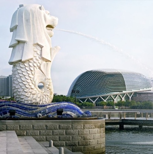 Spouting water from its mouth, the Merlion statue stands tall at 8.6 metres and weighs 70 tonnes.